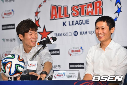 17일 열린 K리그 올스타전 기자회견에서 K리그 발전을 강조한 박지성(왼쪽)과 이영표. /사진=OSEN