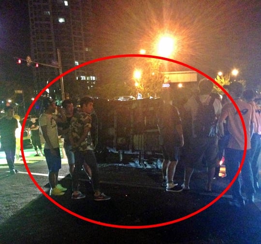 이 누리꾼이 공개한 사진 속에는 한 차량이 반쯤 뒤집혀 있다. 이어 또 다른 차량인 포르쉐911(김태균 차량)은 앞쪽 범퍼가 많이 찌그러진 채 견인되고 있다. 한눈에 봐도 김태균을 들이받은 사고 차량이 반이나 뒤집힐 정도의 큰 교통사고였다. 사진에서 반바지를 입은 김태균을 비롯해 팀 동료인 정근우와 이용규의 모습도 함께 볼 수 있다.