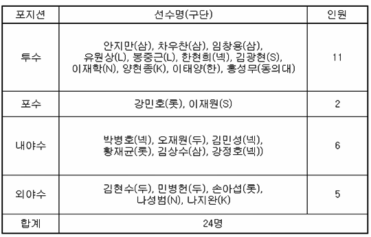 반면, 2차 엔트리에 이름을 올렸던 윤성환과 장원삼(이상 삼성), 우규민(LG), 손승락(넥센), 윤명준(두산), 김승회(롯데)는 탈락했다. 이 중 윤명준만 군 미필자다.