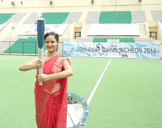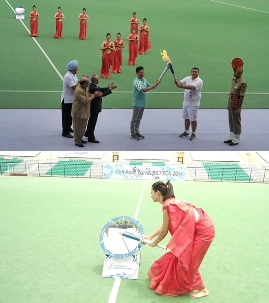 2014인천아시아경기대회 조직위원회는 지난 9일(현지시간) 오후 인도 뉴델리 디안 찬드 국립경기장에서 성화 채화 행사를 열었다.