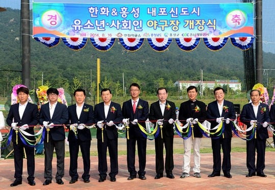 한화 이글스가 지난 16일 충남 홍성군 홍북면 내포신도시 체육공원에서 '한화&홍성 내포 유소년·사회인 야구장' 개장식을 실시했다.
