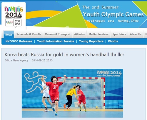한국 여자 청소년 핸드볼 대표팀은 25일 중국 장쑤성 난징에서 열린 '제2회 난징 하계 청소년 올림픽' 여자 핸드볼 결승에서 러시아를 32-31, 한 점차로 물리치고 우승을 차지했다.