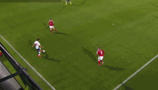 이청용이 경기장 중앙 지역에서 전방을 향해 길게 공을 올렸다. 포물선을 그린 공은 저메인 백포드의 발 위로 정확히 향했다. 이청용의 넓은 시야와 패스의 정확성을 볼 수 있는 장면.
