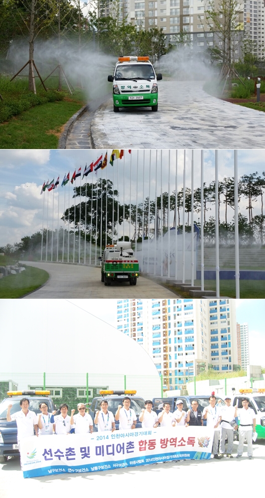 2014인천아시아경기대회 조직위원회는 28일 선수촌과 미디어촌에 대해 보건소 및 위생사협회의 지원으로 합동 방역소독을 실시했다.