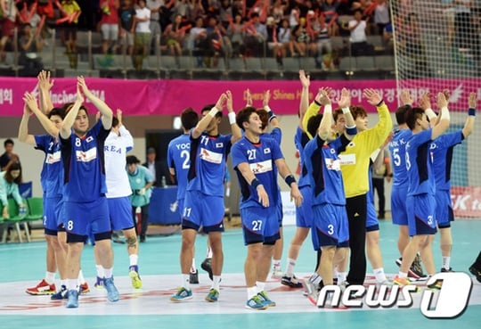 '2014 인천 아시안게임'에 출전한 대한민국 남자 핸드볼 대표팀이 사우디아라비아와 힘겨운 승부 끝에 본선리그 첫 승을 거뒀다.