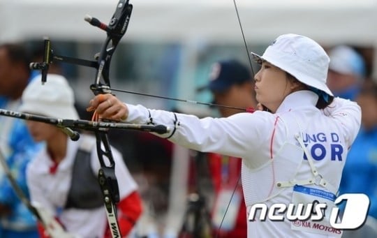 한국 여자 양궁 대표팀의 정다소미(24, 현대백화점)가 양궁 리커브 개인전 결승에서 팀 동료 장혜진(28, LH 양궁팀)을 제압하고 금메달을 따냈다. 단체전 금메달에 이어 2관왕이다.
