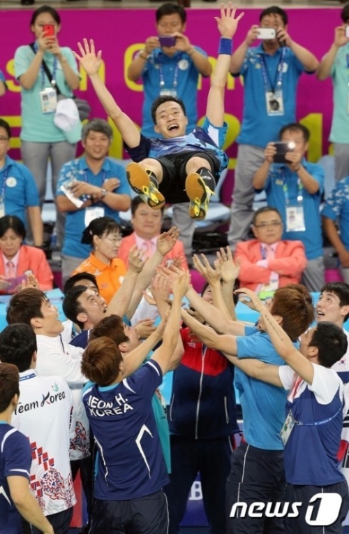 양 팀이 매치 스코어 2-2로 팽팽히 맞선 5경기. 한국은 이번 대회에서 '5경기를 맡아줄 선수가 없다'는 이유로 베테랑 이현일을 복귀시켰다. 그리고 이는 신의 한수가 됐다. 이현일은 가오후안을 세트스코어 2-0으로 잡고 한국에 극적인 금메달을 안겼다. 베테랑의 존재가치를 온몸으로 증명함과 동시에 팀에 12년 만에 아시안게임 금메달을 안겼다.