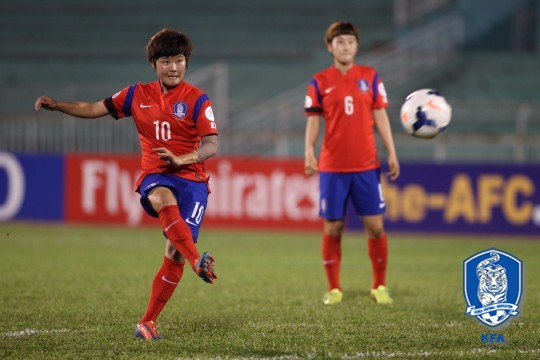 지소연 외에도 전가을(현대제철)과 함께 4골을 넣으며 맹활약한 이정은(부산상무)이 A매치 데뷔골을 맛봤다. 또 대표팀에 최초로 발탁된 수비수 김혜영(울산과학대)도 A매치 데뷔전에서 골 맛을 보며 대승에 보탬이 됐다.