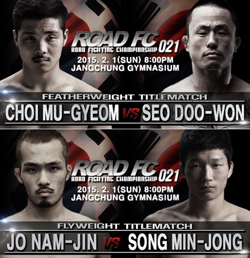 또 같은 날 페더급(65.5kg)챔피언 최무겸과 서두원이 챔피언 자리를 놓고 대결을 펼친다. 최무겸에게는 챔피언 1차 타이틀 방어전이다. 최무겸은 지난 2월 9일 서울 올림픽 홀에서 열린 '로드FC 014'에서 챔피언에 등극했다.