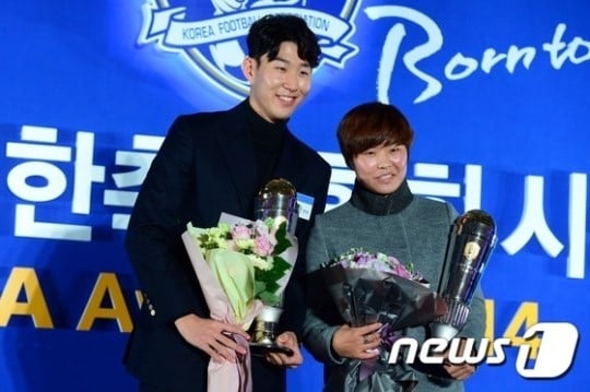 손흥민과 지소연은 23일 서울 용산구 효창동 백범김구기념관에서 열린 '2014 KFA 시상식'에서 언론사와 협회 기술위원회의 투표를 통해 각각 올해를 가장 빛낸 남자 선수와 여자 선수로 선정됐다.