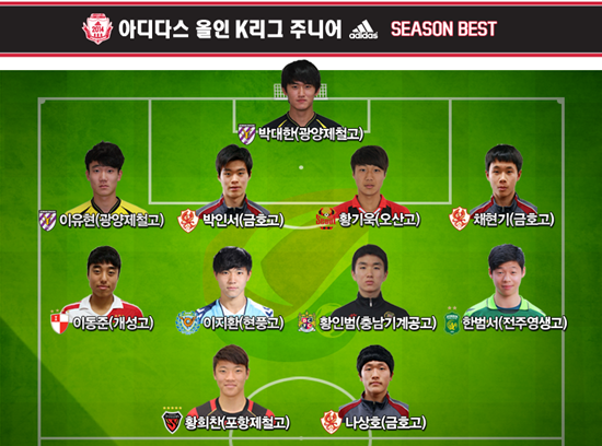 이 외 한범서(전북), 황인범(대전), 이지환(대구), 이동준(부산, 이상 미드필더), 채현기(광주), 황기욱(서울), 박인서(광주), 이유현(전남, 이상 수비수), 박대한(전남) 등이 베스트11 명단에 포함됐다.