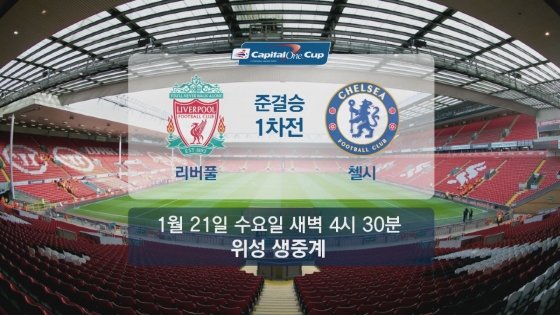 JTBC는 잉글랜드 프로축구클럽 주관 대회인 '2014-2015 캐피탈 원 컵' 준결승 1차전 리버풀 대 첼시 경기를 오는 21일 오전4시30분(이하 한국 시간)에 생중계할 예정이다. 이어 오는 28일 같은 시각에 열리는 2차전 경기 역시 방송할 예정이다,