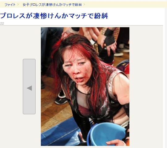 일본 스포츠 매체인 데일리 스포츠에 따르면 지난 22일 일본 도쿄에서 열린 여자프로레슬링 경기에서 요시코가 상대 야스카와 아쿠토를 무자비하게 가격, 골절상을 입혀 논란이 되고 있다.