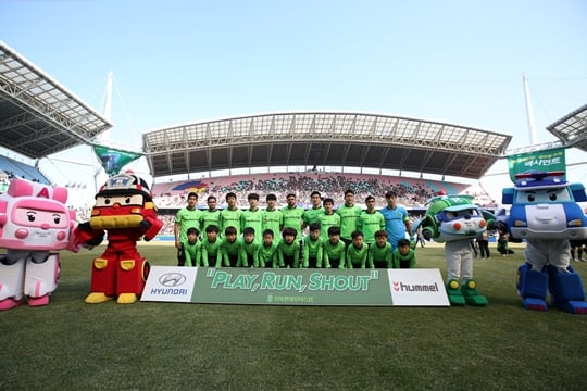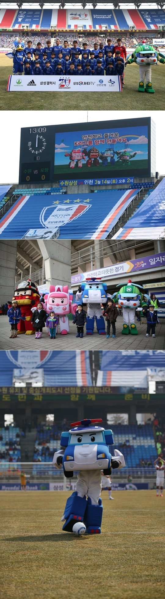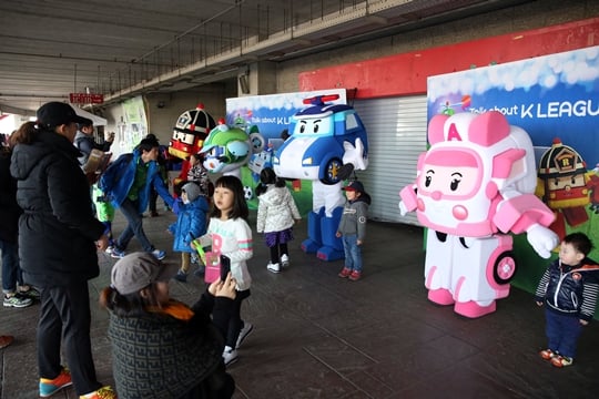 지난해 K리그 홍보대사로 임명된 인기 애니메이션 로보카폴리는 '현대오일뱅크 K리그 클래식 2015' 개막 라운드가 열린 7일과 8일에 전주와 수원을 찾아 경기장을 찾은 어린이 팬들에게 큰 즐거움을 선사했다.