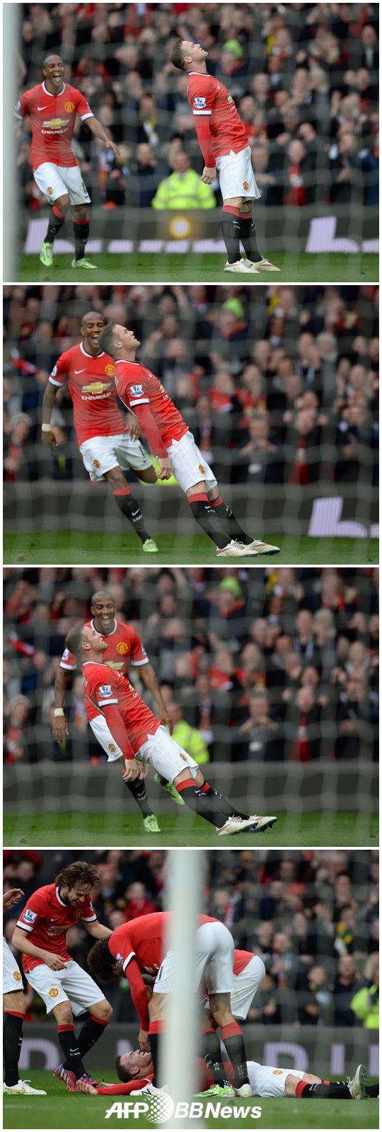 쐐기골을 넣은 웨인 루니(30, 맨체스터 유나이티드)가 'KO 세리머니'를 선보였다. 자신의 사적인 영상이 언론에 노출되자 재치 있게 응수한 것이다.