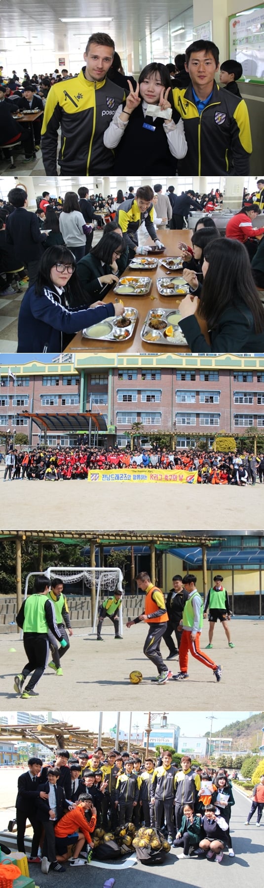 전남 드래곤즈가 25일 전남 광양시 소재 동광양중학교와 옥곡중학교를 찾아 축구클리닉과 배식봉사를 실시했다.