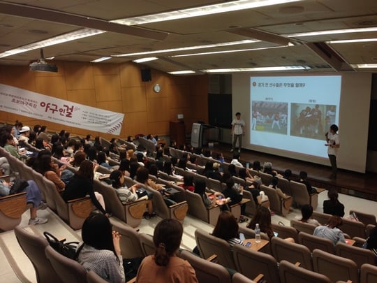 2014년 5월 덕성여대에서 열린 '야구인걸' 특강 모습. /사진=넥센 히어로즈 제공