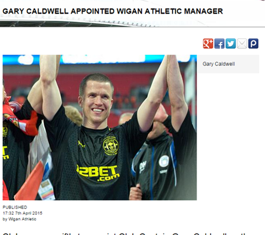 칼드웰 감독 선임을 발표한 위건. /사진=위건 공식 홈페이지 캡처