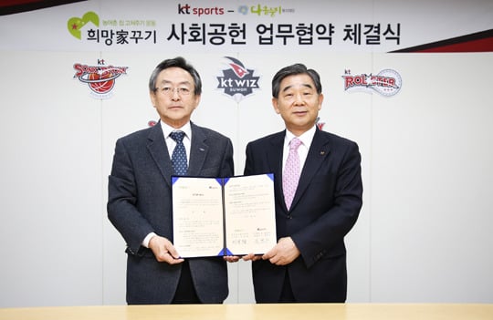 케이티 스포츠가 8일 수원 케이티 위즈파크에서 사회공헌 복지재단 다솜둥지와 상호협약을 체결했다.