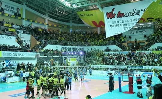 이번 우승 기념 퍼레이드는 4월 1일, 삼성화재를 챔피언 결정전 시리즈 전적 3대0으로 꺾고 우승을 확정한 직후 개최한 축승회에서 제종길 안산시장의 제안으로 성사됐다.