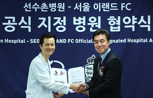 서울 이랜드 FC(구단주 박성경)가 잠실종합운동장 사거리에 위치하고 있는 스포츠재활 전문 병원인 '선수촌병원'과 스폰서 계약을 맺고 전략적 파트너로서의 협력 관계를 맺었다.