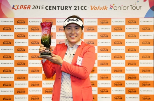 송금지(45, 볼빅)가 '한국여자프로골프협회(KLPGA) 2015 센츄리21CC·볼빅 시니어투어 3차전'서 3년 만에 시니어투어 우승컵을 들어올렸다.