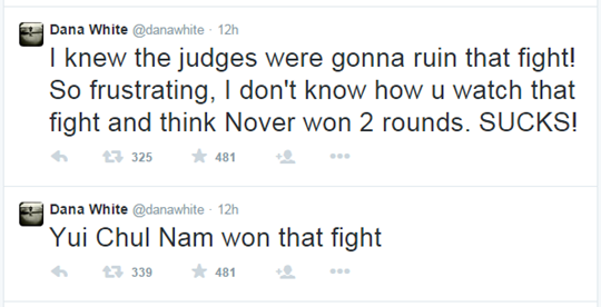 남의철의 판정패를 이해할 수 없다고 밝힌 UFC 데이나 화이트 회장. /사진=데이나 화이트 회장 트위터 캡처