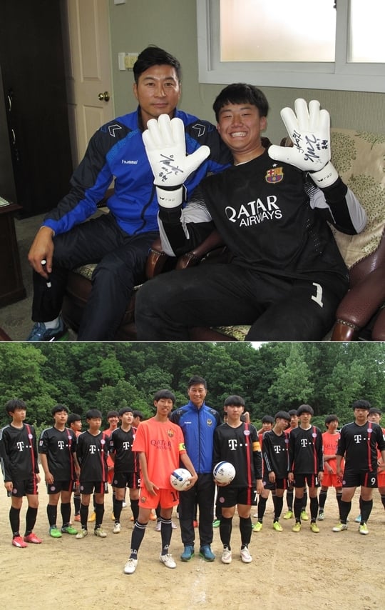 지난해에 이어 올해도 원당중학교의 골키퍼를 맡고 있는 신동주 학생은 지난해 유현이 약속한 친필 사인 골키퍼 장갑을 선물 받은 뒤 이날 경기에 임했다.