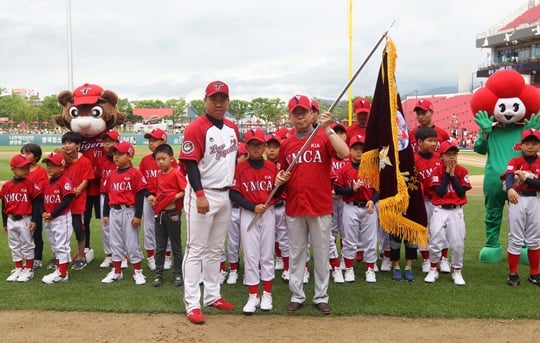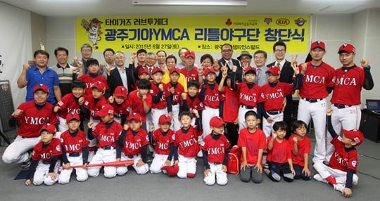 기아자동차와 KIA는 27일 광주-기아 챔피언스 필드에서 열리는 두산전에서 2015시즌 제2회 타이거즈 러브투게더 데이를 실시했다. 특히 이날 러브투게더 적립금이 지원된 '광주기아 YMCA 리틀야구단' 창단식이 열렸다.