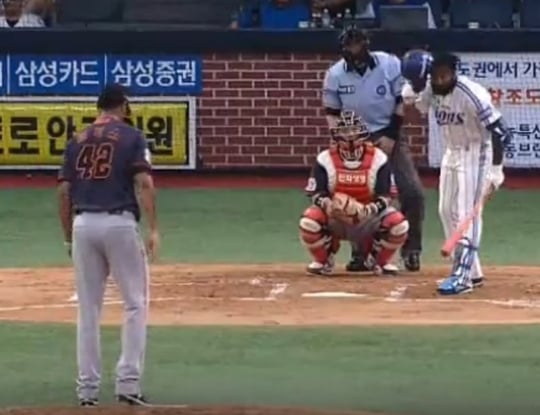 경기 시작 후에도 삼가 해야 할 행동이 나왔다. 1회말 야마이코 나바로 타석 때 에스밀 로저스가 투구에 앞서 고개를 꾸벅하는 동작을 취하자 야마이코 나바로가 모자를 벗어 로저스에게 인사를 했다. 이런 제스처들은 ‘KBO리그’에 대한 예의가 아니다. 그런 행동과 처신은 ‘동네 야구’에서나 하는 것이다.