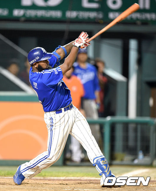 나바로는 무사 1,3루 기회서 안영명을 상대로 선제 스리런포를 터트렸다. 이글스파크 좌중간 담장을 훌쩍 넘는 장외 홈런이었다. 시즌 35호 홈런.