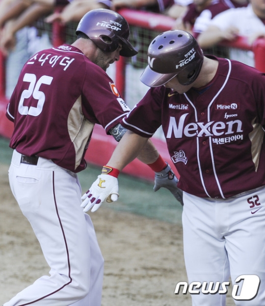 하지만 넥센은 8회초 공격에서 고종욱의 우중간 3루타와 스나이더의 중견수 희생플라이로 다시 8-7로 앞섰다. 이어 유한준-이택근(2타점)의 연속 적시타와 박동원의 희생플라이, 고종욱의 적시 2루타 등이 더해지며 14-7까지 차이를 벌렸다.