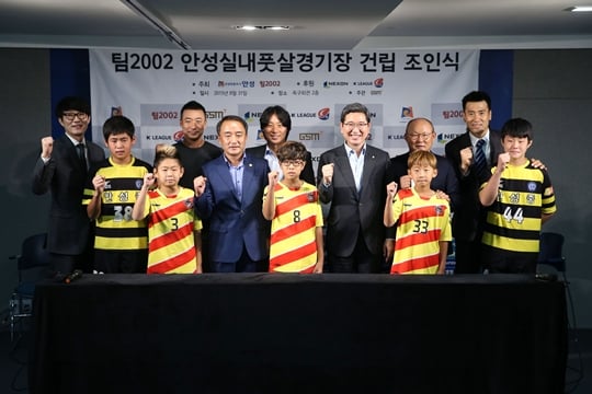 2002 월드컵 4강 주역 팀2002'는 8월 31일 오전 11시 축구회관 2층 다목적실에서 안성 유소년 축구 발전 및 인재 육성 지원을 위한 ‘팀2002 안성실내풋살경기장 건립 조인식’을 열고 안성시에 2억원을 전달했다.