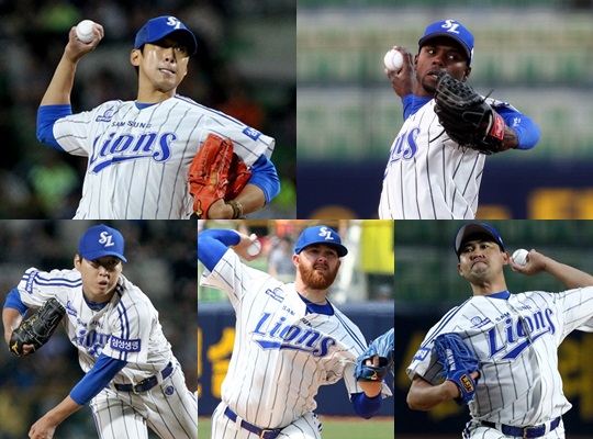 삼성 라이온즈 선발진. 윤성환-피가로-차우찬-클로이드-장원삼. /사진=삼성 라이온즈 제공
