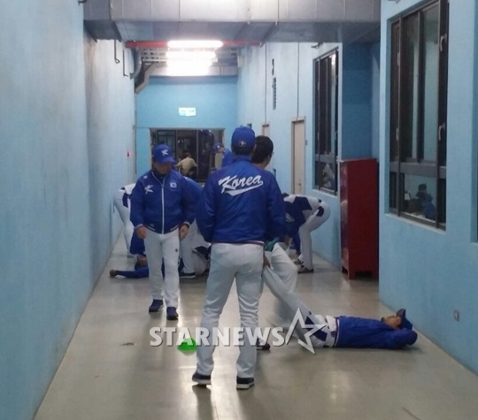 이로 인해 한국-도미니카의 경기도 50분 늦게 열렸다. 하지만 내용을 들여다보면 문제가 많이 보인다. 최초 주최 측은 미국과 베네수엘라의 경기가 오후 6시 20분 이후에 끝날 경우, 별도 타격 연습 없이 몸만 풀고 경기를 치른다고 밝혔다. 이로 인해 선수단은 덕아웃 뒤편 복도에서 몸을 풀었다. 선수들 얼굴에 짜증이 묻어난 것은 당연지사다.