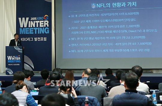 KBO는 올해부터 팬들과 함께하는 윈터미팅 프로그램을 기획했다. 이날 장윤호 이사는 약 한 시간 동안의 강연을 통해 NFL의 차별점과 성과, 성장 과정과 성공 비결을 제시한 뒤 이를 접목 시킨 KBO리그의 미래에 대해 언급했다.