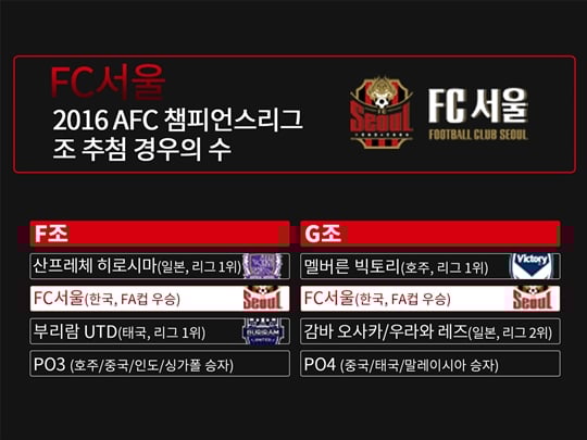 10일 오후 5시(한국시간) 말레이시아 쿠알라룸푸르에서 2016 AFC챔피언스리그 조 추첨을 시작으로 아시아 축구 축제의 화려한 막이 열린다. FA컵 우승을 차지하며 4년연속 ACL진출권을 획득한 FC서울은 2016 ACL조추첨 시스템에 따라 F조 또는 G조에 합류하게 된다.