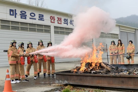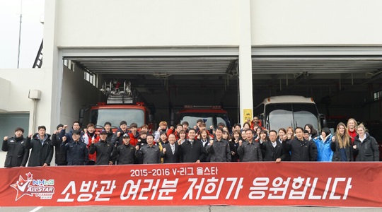 올스타전에 앞서 프로배구 올스타 선수들이 24일 충남 천안시 중앙 소방학교에서 '1일 소방교육 체험'을 실시하였다.
