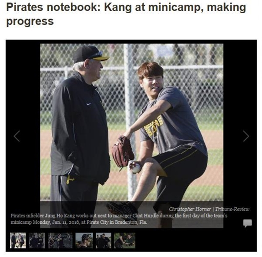 피츠버그 트리뷴은 12일(이하 한국시간) 플로리다주 브래든턴 파이어리츠 시티에서 열린 미니캠프에 참가한 강정호의 소식을 전했다.