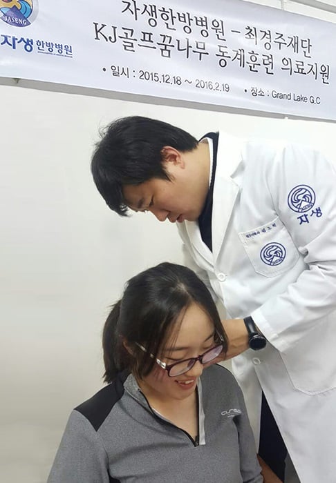 최경주 재단은 지난 21일부터 이틀간 현재 중국 광저우에서 '2015-2016 최경주재단 동계훈련'을 받고 있는 KJ골프꿈나무들을 대상으로 자생한방병원이 제공하는 의료지원 서비스를 실시했다.