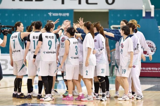 창단 첫 플레이오프 진출에 성공한 KEB하나은행. /사진=WKBL 제공