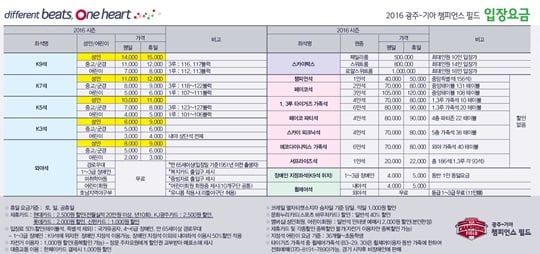 KIA타이거즈가 다음달 5일부터 광주-기아 챔피언스 필드에서 열리는 2016시즌 홈 경기 입장요금을 확정했다.