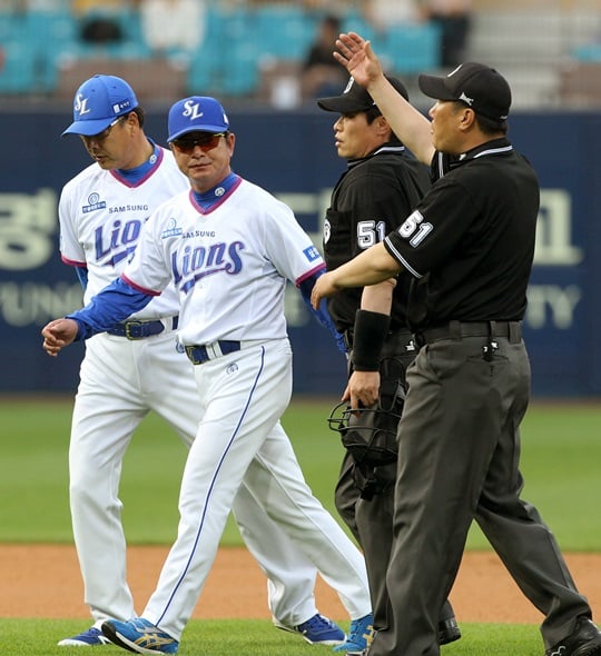 하지만 오준혁은 밟지 않고 곧바로 3루로 뛰었다. 이 부분을 류중일 감독이 어필했고, 심판진이 4심 합의판정 끝에 아웃 판정을 내렸다. 경기 시작부터 묘한 장면이 연출된 셈이 됐다.