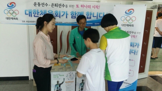 대한체육회가 28일부터 31일까지 강원도 일원에서 개최되는 제45회 전국소년체육대회 기간 동안 참가선수, 지도자, 체육관계자 및 학부모 등을 대상으로 운동선수 진로교육 및 은퇴선수 지원 사업 홍보를 펼치고 있다.
