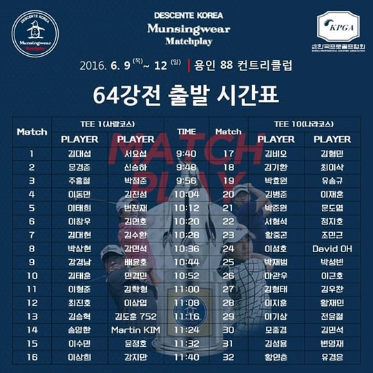 한편 KPGA 코리안투어 주관방송사인 JTBC골프에서 64강전 경기를 9일 오전 11시부터 생중계한다.