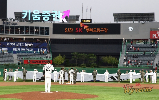 SK 와이번스가 주중 3연전 동안 호국보훈의 날 등 다양한 행사를 마련했다. /사진=SK 와이번스 제공