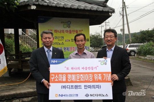 NC다이노스와 농협은행은 이장 위촉에 대한 답례로 마을 어르신들께 안마의자와 파스 등 구단 기념 물품을 선물했다.마을 주민들은 음식을 준비해 함께 나누며 '또 하나의 마을 만들기 운동'의 의미를 더했다.