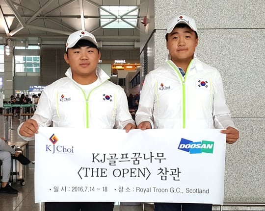 최경주재단은 15일 "재단 소속 골프꿈나무 김민규(16), 박상하(17)가 스코틀랜드 로열 트룬 골프클럽에서 개최되는 '2016 디오픈 챔피언십(이하 디오픈)'에 갤러리로 참관하는 것은 물론 코스에서 플레이하는 기회도 갖게 됐다"고 밝혔다.