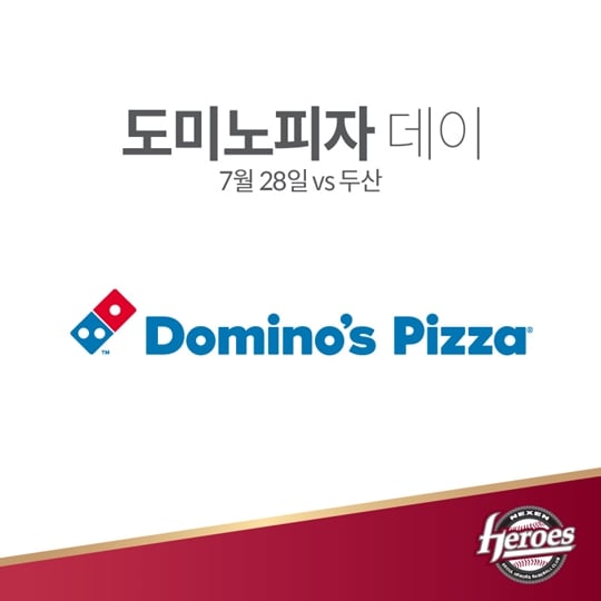 넥센 히어로즈는 28일 오후 6시30분 고척 스카이돔에서 펼쳐지는 두산베어스와의 경기에 ‘도미노피자 데이’ 이벤트를 실시한다.
