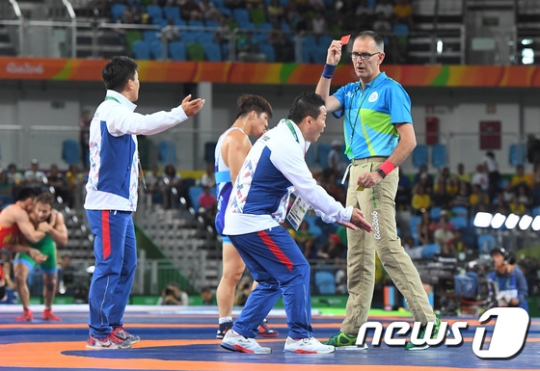 경기 후 안한봉 감독은 매트에 올라온 뒤 피를 토하는 심정으로 눈물까지 흘린 채 강력한 항의를 했다. 하지만 항의는 받아들여지지 않았다. 결국 지난 2012 런던 올림픽 금메달(당시 66kg급)리스트 김현우의 2연패 꿈도 산산조각이 났다.